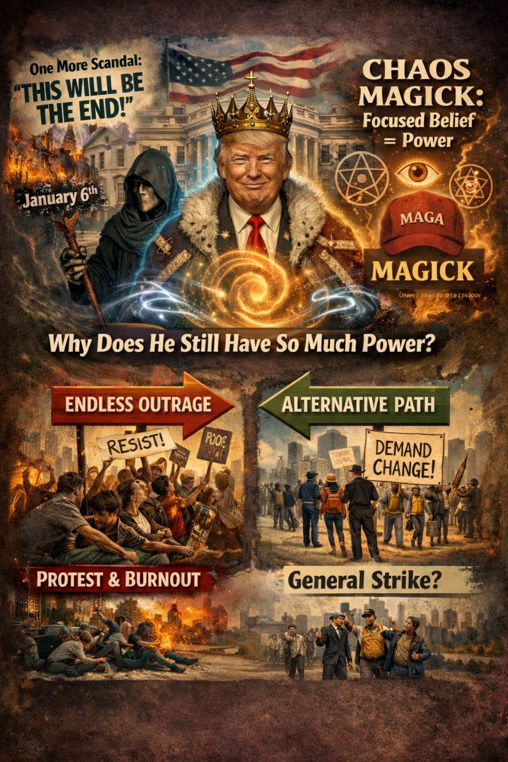 colorado_chloe @punditman Yes- 100%…no one wants to know this but the right has powerful magick and some of it is chaos magick that keeps the left weak. As long as the left focuses on Trump and is reactive—he will have all the power. That is why he can do anything as insane as it is—lies and corruption and get away with it. It’s a tool to simply keep the left from invoking a desire. MAGA means magician.